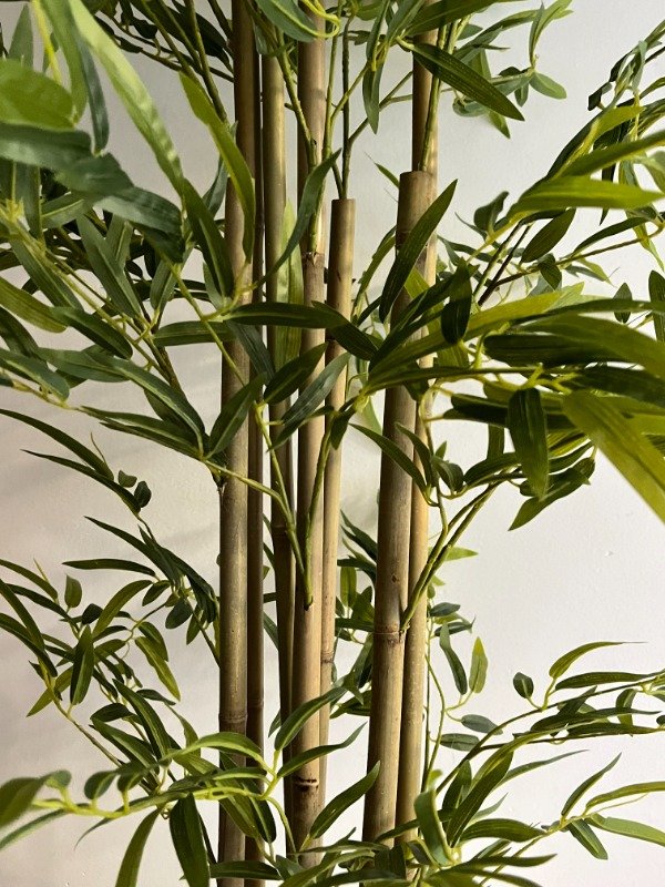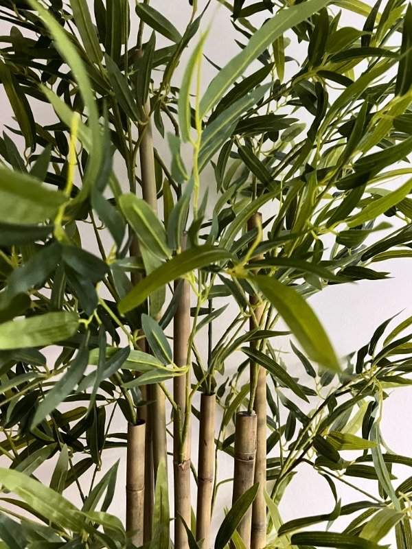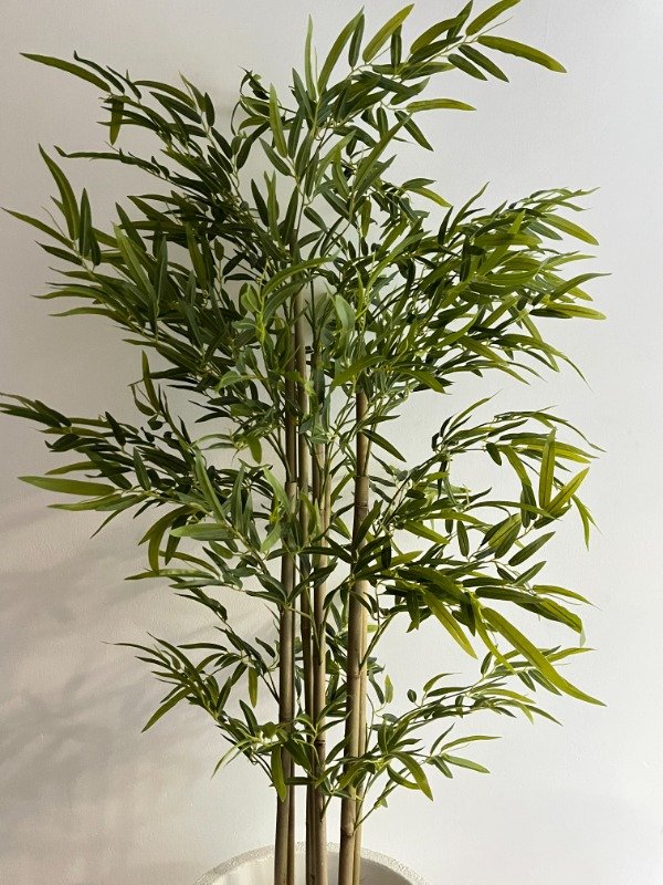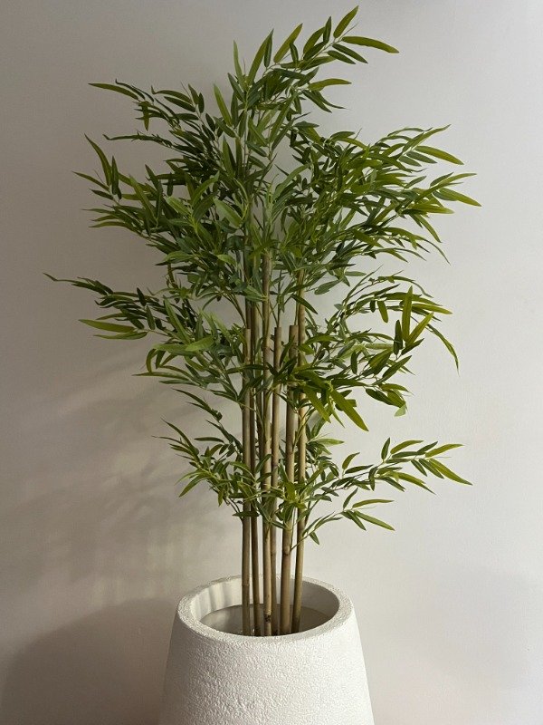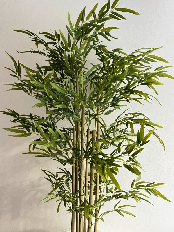 Planta de porte esbelto y elegante, compuesta por cañas finas y verticales con hojas alargadas de un verde vibrante. Su diseño realista captura la serenidad y frescura del bambú natural, convirtiéndolo en una opción ideal para aportar un toque zen, exótico y armonioso a cualquier espacio interior, sin necesidad de cuidados.