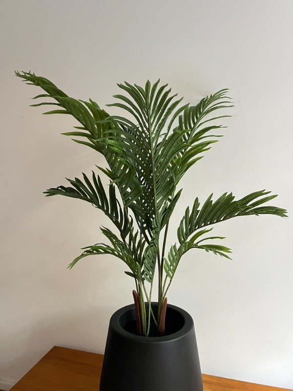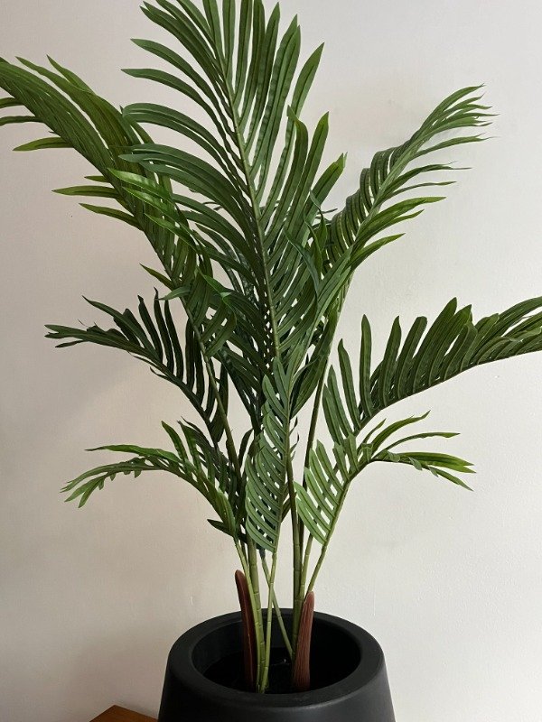 Palmera tropical de gran belleza, con hojas largas y finas de un verde intenso que imitan a la perfección el follaje natural. Ideal para decorar interiores amplios y luminosos, aportando frescura y un toque exótico sin necesidad de mantenimiento. Su diseño realista la convierte en una pieza versátil para hogares, oficinas o locales comerciales.