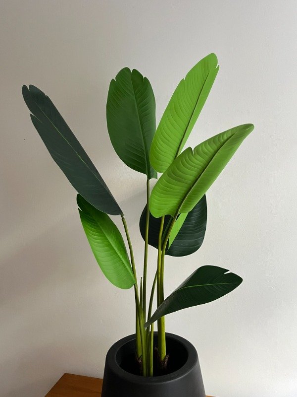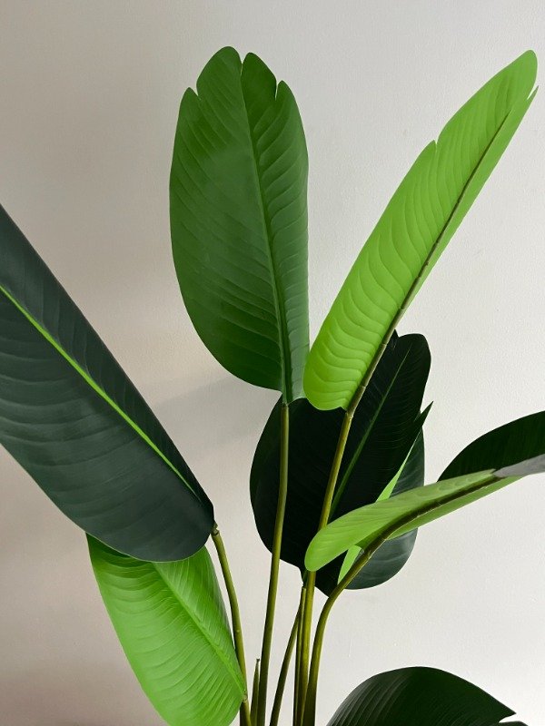 Planta tropical de gran porte y presencia, famosa por sus hojas largas, anchas y de un verde profundo que evocan un ambiente selvático y sofisticado. Su diseño realista imita a la perfección la belleza de la Strelitzia Nicolai natural, convirtiéndola en una pieza ideal para interiores amplios, luminosos y con estilo, sin necesidad de cuidados.