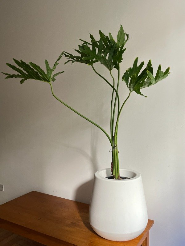 El Filodendro Misionero es una planta imponente y tropical, conocida por sus hojas grandes, profundamente lobuladas y de color verde intenso. Tiene un porte arbustivo y elegante, ideal para destacar en interiores amplios o espacios con buena luz. Su presencia aporta frescura y un aire selvático y vibrante.