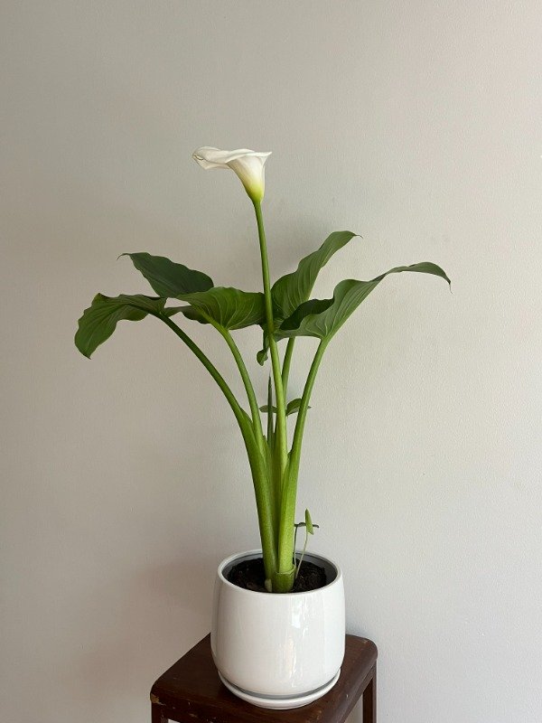 Con su elegancia minimalista y flores en forma de copa, la Cala Blanca es símbolo de pureza y sofisticación. Originaria de Sudáfrica, es ideal para interiores luminosos y arreglos decorativos, aportando frescura y un toque clásico atemporal.